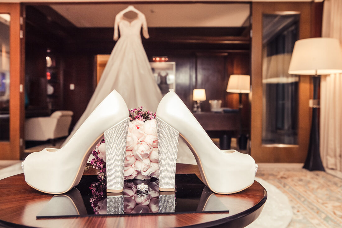 Wedding photography London as well as any other art is a combination of diverse types of photography – portraits, journalism, candid moments, staged images and wedding details. The wedding accessories make the wedding day unique and personal.Β I know how much time the bride devotes to choose the wedding venue, to agree the flower arrangements, isles decoration, table centerpiecesΒ and the whole style of the wedding decor to match. As a professional wedding photographer in London and beyond I am to capture wedding bouquets, shoes, ceremony venue flower decoration. Wedding rings images are must have as a symbol of eternal love. They are not easy to photograph but this is where professionalism of the wedding photographer Surrey is revealed.